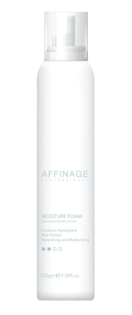 Affinage Professional Moisture Foam is a light to medium hold mousse containing Hydrolyzed Rice Protein. Rich in Amino Acids, it nourishes hair from root to tip and increases natural shine while helping to fortify against damage.