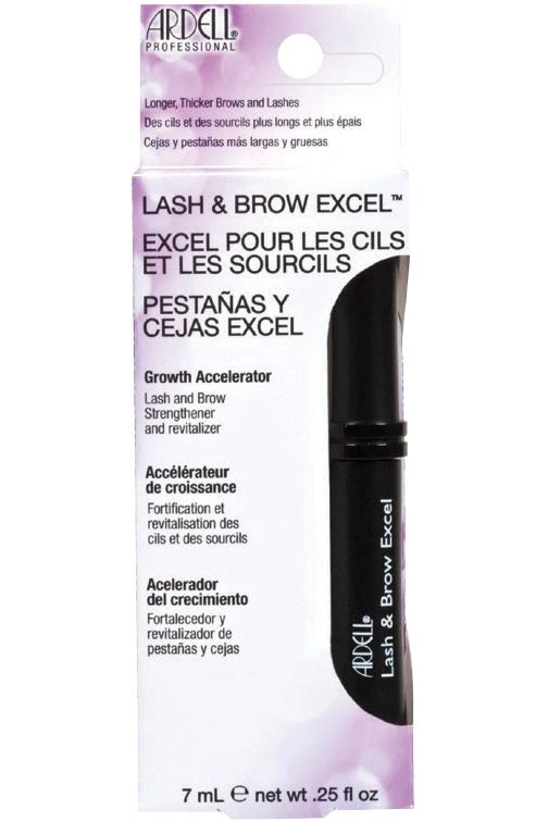 Ardell Lash and Brow Excel works to repair weak eye lashes and restore thickness to thinning and over-tweezed or waxed eyebrows. Formulated with a concentrated growth accelerator serum formulated with multi-proteins and conditioners that works to immediately grow fuller, longer and thicker lashes and brows.