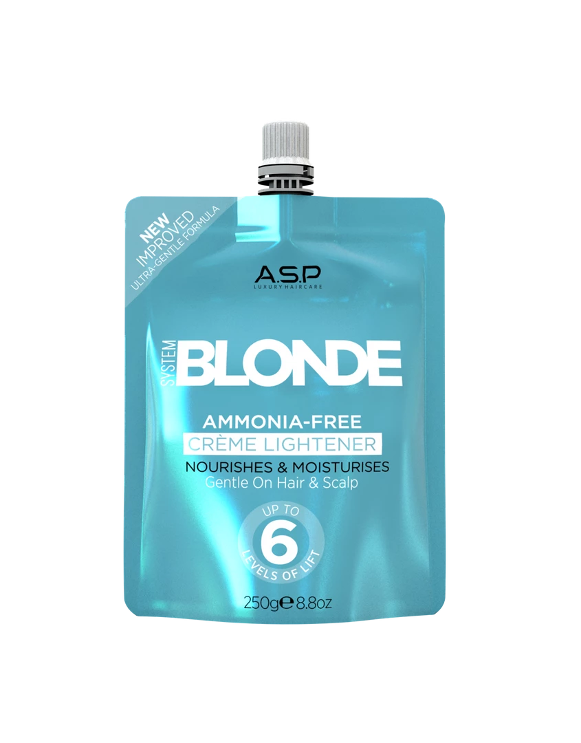 Introducing ASP’s new Ammonia Free Lightening Creme Platinum Ice – A gentle yet high performing formula that provides up to 6 levels of lift in a handy squeeze pouch!