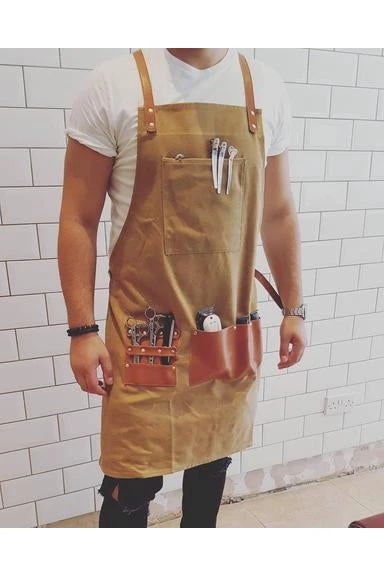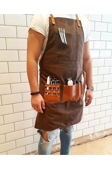 Expect natural ageing and wear to really give your Barber Apron your own personal mark. The heavy and rustic waxed canvas aprons are available in a range of 4 colours.