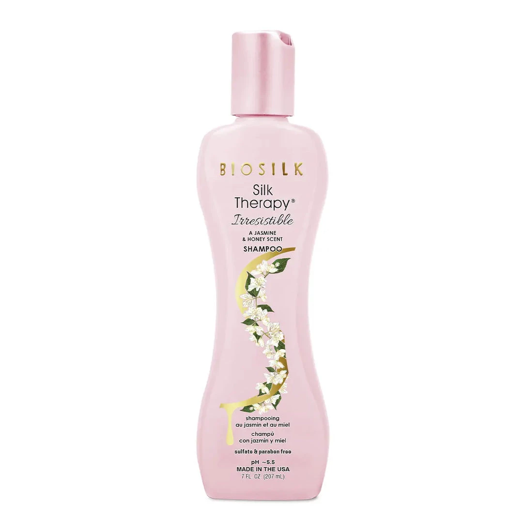 How to use: Apply shampoo to damp hair and work into a rich lather. Rinse thoroughly. Repeat if desired. Use with BioSilk Silk Therapy Irresistible Conditioner.