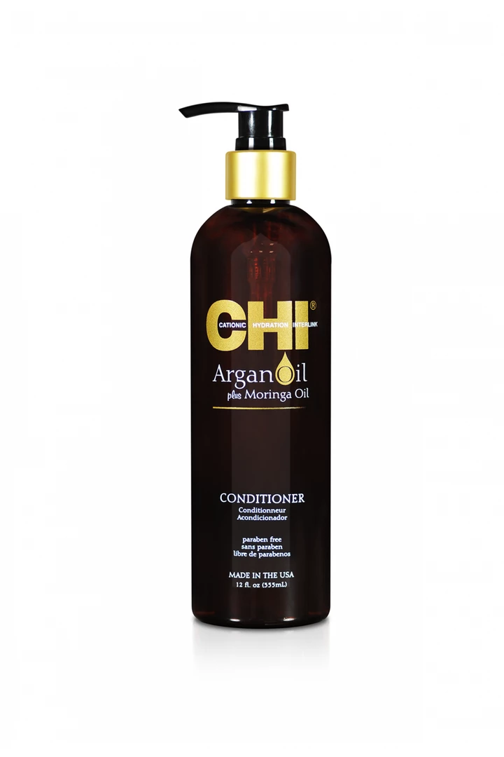 CHI Argan Oil Conditioner rejuvenates dry, damaged hair by replenishing moisture and infusing hair with vitamins and nourishing oils for a smooth, soft, frizz-free finish with restored shine. This nourishing conditioner enhances hair’s strength and elasticity while helping to protect against damage from thermal styling and UV rays.