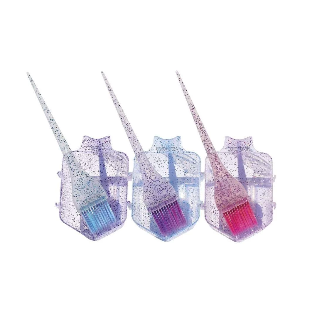 Mini Brushes:Â These dazzling mini glitter brushes are available in three transparent colours, including Sassy Pink, Electric Blue, and Royal Purple. Create new looks for clients with ease using the ultra-soft-feather bristles for blending and creating perfect transitional shades.