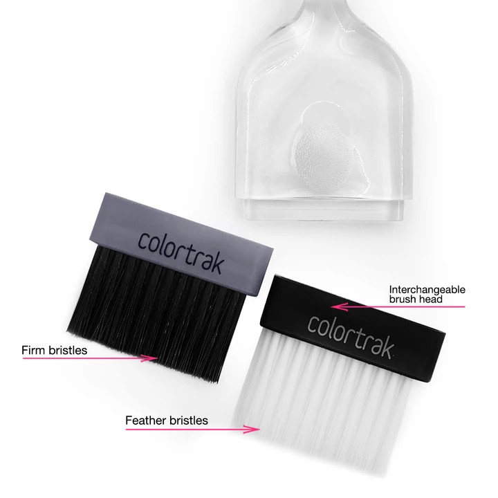 Quickly switch out brush heads with this versatile colourist tool that is designed to help you create perfectly seamless blends, or play with product density to achieve the perfect colour application for your look! The brush features a thicker handle to help provide a more comfortable experience for stylists with the bonus of interchangeable brush heads – one ultra soft feather bristle and 1 firm bristle.