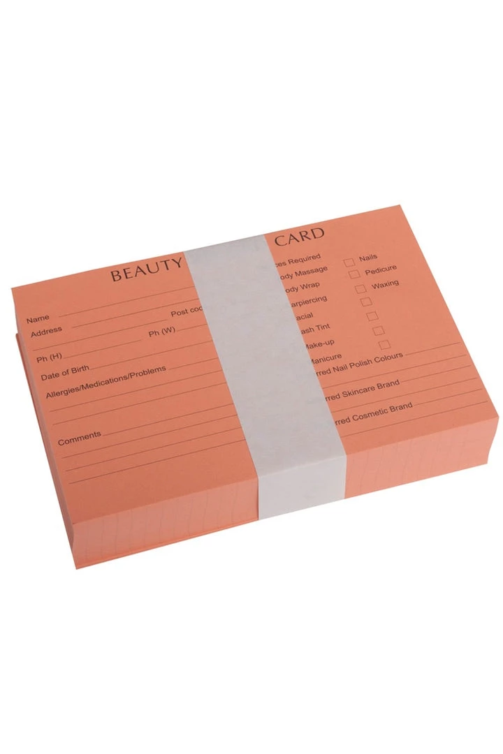 Dateline Professional Beauty Therapy Record Cards are a great way of keeping a record of all your customers. These easy and efficient record cards contain details on services performed, preferred nail polish, skincare and cosmetics, allergy details, comments and contact details.