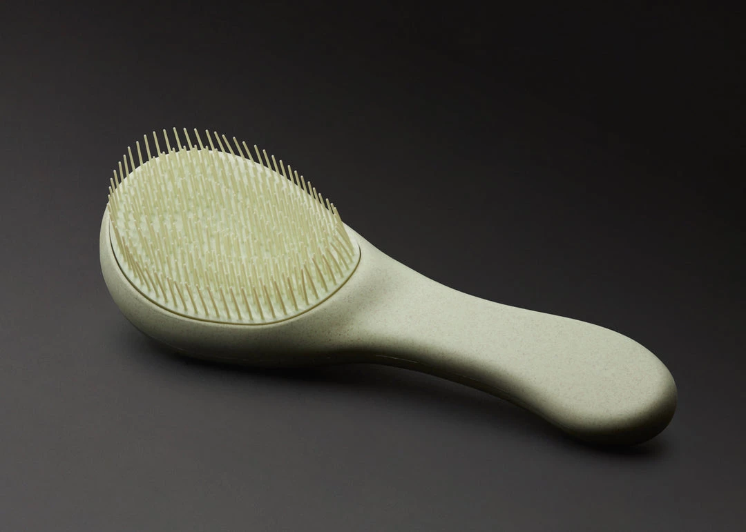 Made from 100% compressed, biodegradable natural plant starch – Maize & Casava – the curved, moulded bristles and cushioned paddle gently massage the scalp, preventing damage to the hair caused by breakage.