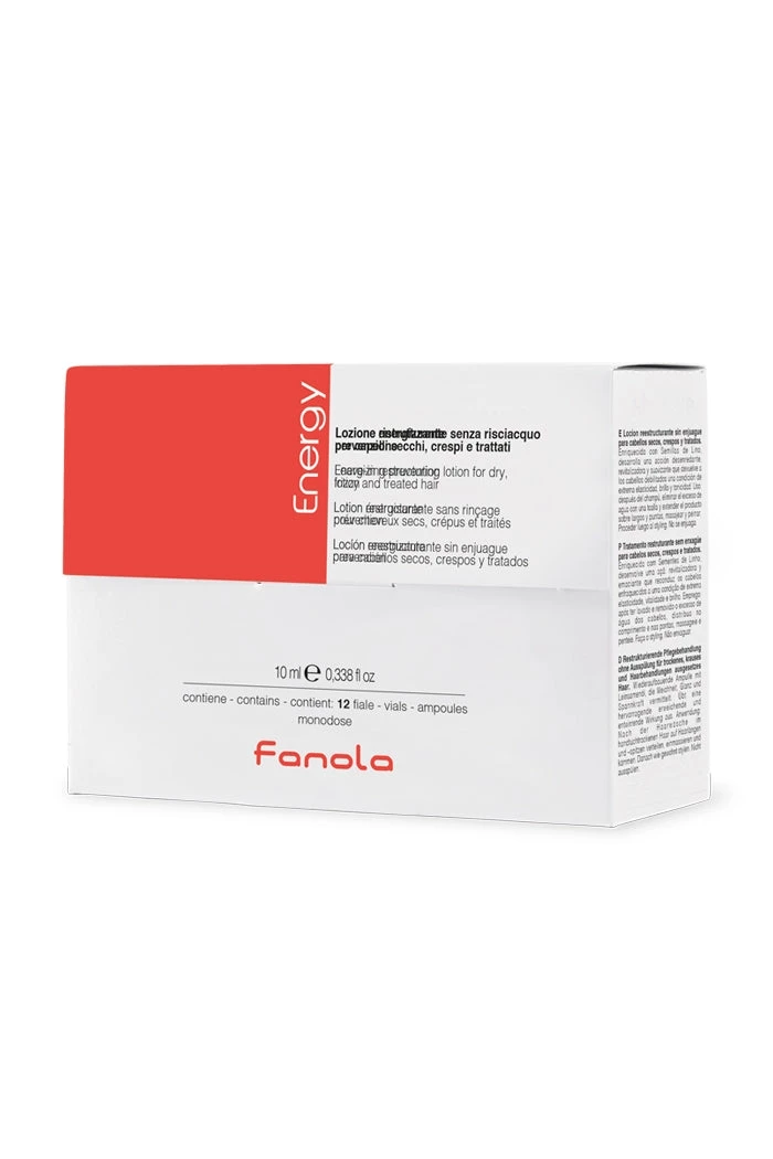 Fanola Energy lotion that helps prevent hair loss. Formulated with Extracts of Rosemary, Nettle and Oligo-elements their purifying and rebalancing properties nourish and stimulate bulb activity. The Stimulating action of its Soya Proteins carry out a stimulating action that leaves hair full vigour and tone.
