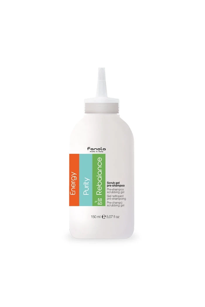 Fanola’s Pre-Shampoo scrubbing gel is a triple action peeling and purifying treatment. Stimulating, Sebum-regulating and anti-dandruff.