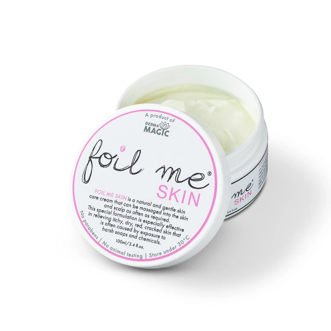 - 100ml/3.4 fl.oz Foil Me Skin in white plastic container.