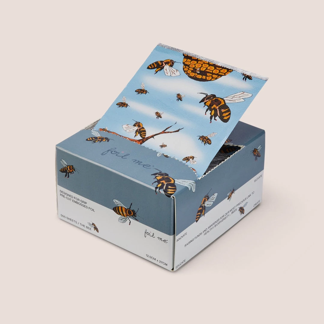 “My dream for a few years now has been to help the waning bee population, and I finally found a gap this year in our foil creations where we could create a bee foil to raise funds and awareness for bees. I chose the Wheen Bee Foundation because they have a myriad of projects to ensure the survival of bees and a proven record of funding these projects to completion,” says Emily.