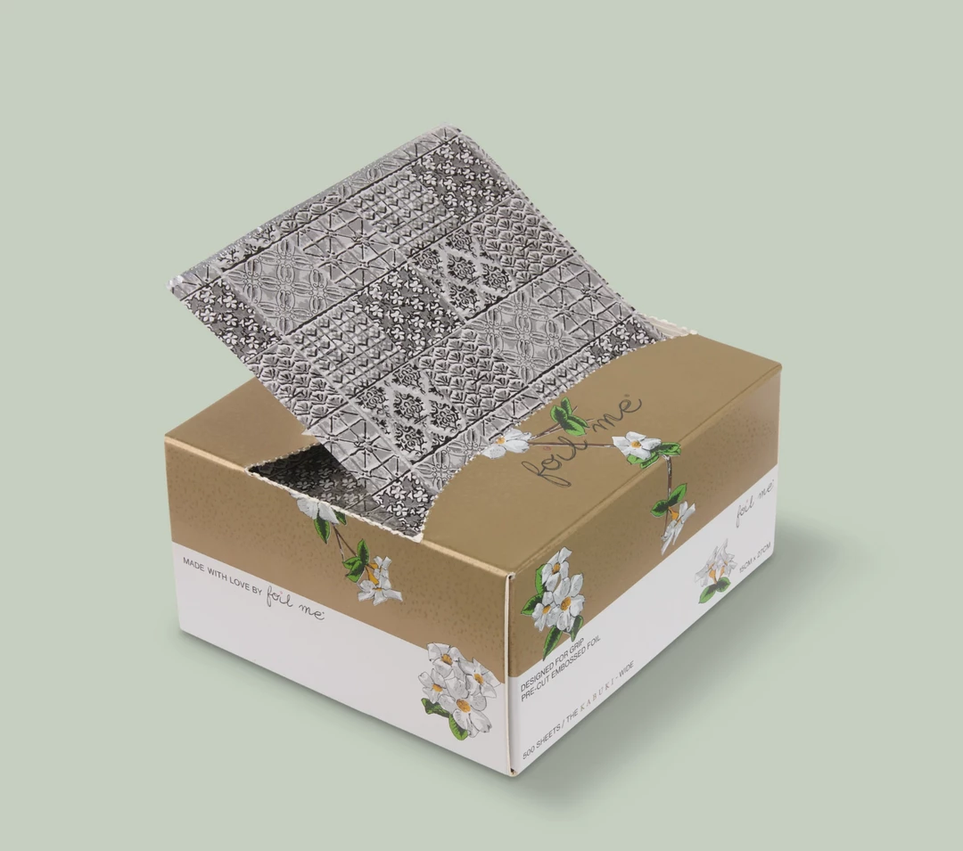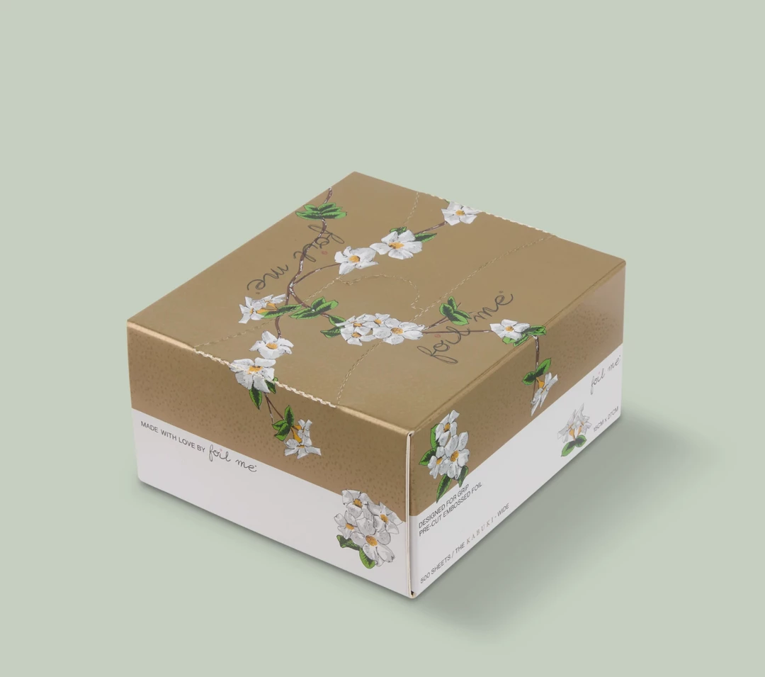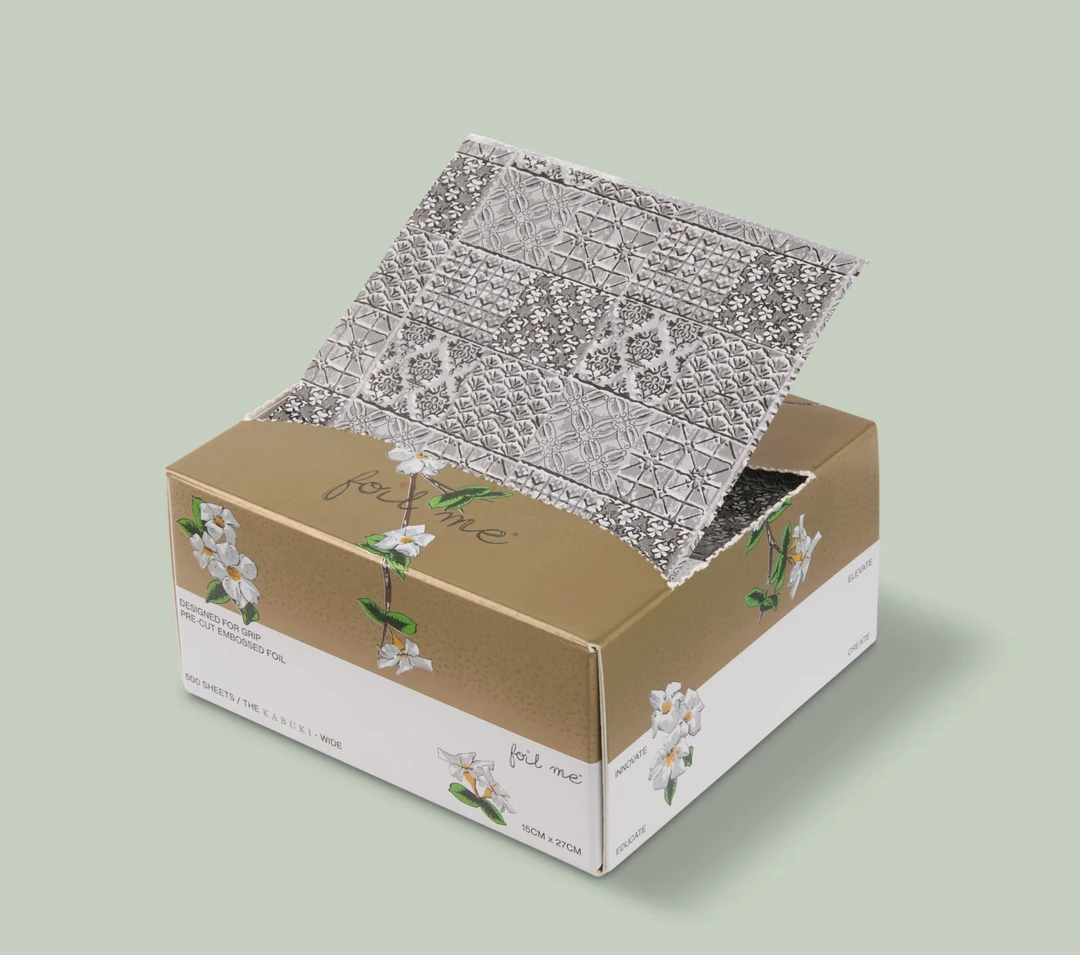 - Minimise time, conserve product and improve efficiency with the signature embossing, our popular pre-cut foil sheets and the convenient ’tissue-box’ dispensing.