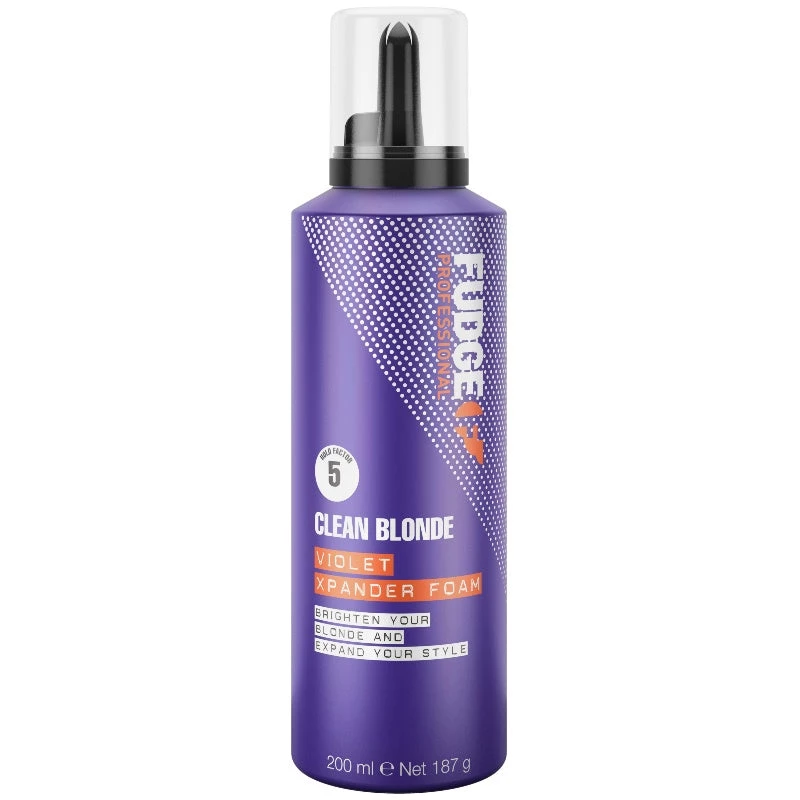 Fudge Clean Blonde Violet Xpander Foam makes it possible to get a voluminous hair completely without yellow shades. This lightweight foam increases the density of the hair by as much as 180 percent, making it appear fuller from root to tip.