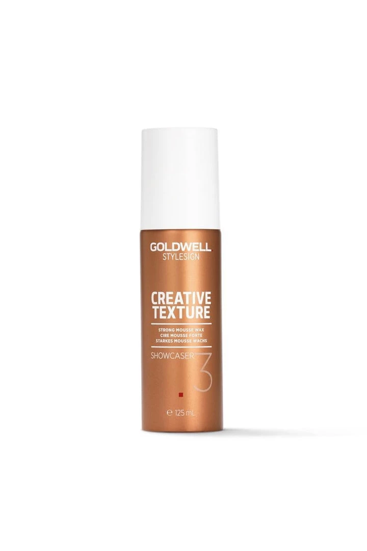 Goldwell StyleSign Creative Texture Showcaser is a strong-hold mousse wax designed to creat textured looks while adding shine to the hair.