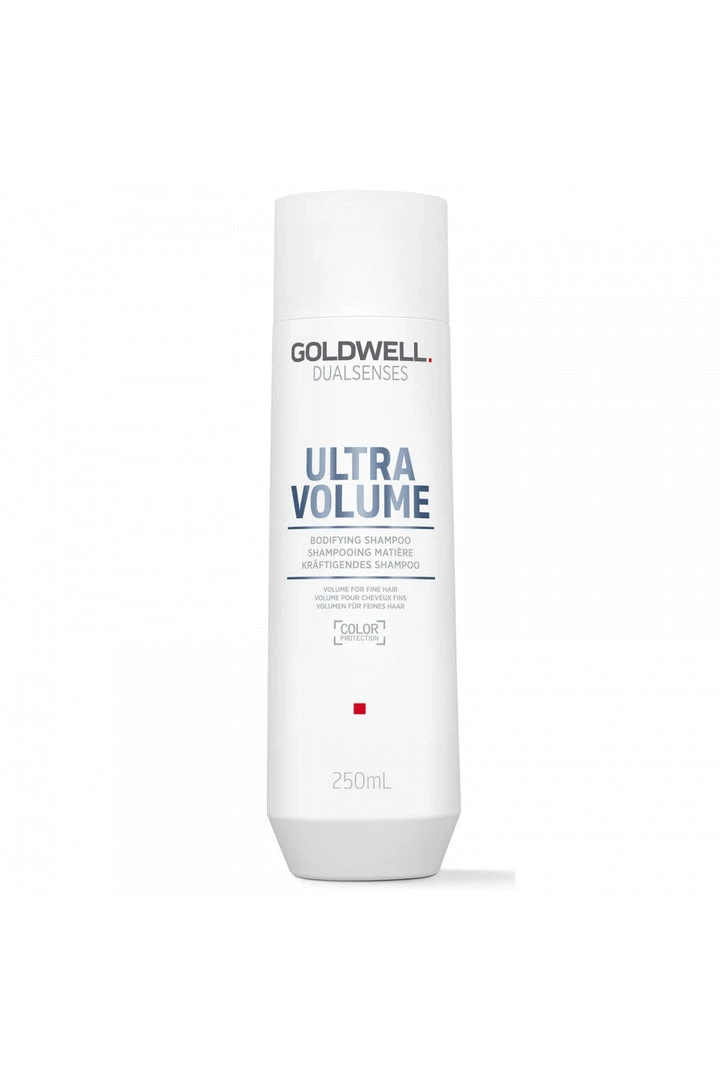 Goldwell DualSenses Ultra Volume Bodifying Shampoo instantly builds touchable and visible volume while enhancing natural shine. As gentle as water, the unique FadeStopFormula minimizes color fading with every use.