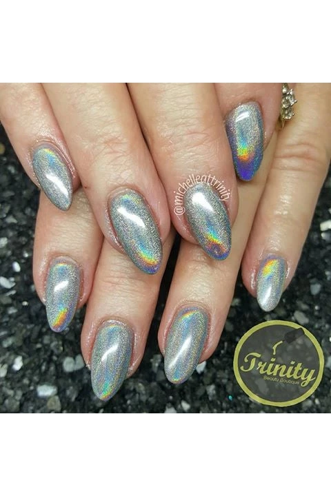 All displayed pictures are the Joss FX chrome over black. To use the pigments start with a black/dark base (Acrylic or Gel) and apply a coat of Joss Reflective Seal or other UV Gel Top Coat. Cure for 30 seconds under LED or 2 minutes under UV. Apply a small amount of pigment and gently rub with applicator to smooth out for a chrome effect. Remove any excess pigment with a soft duster brush and then finish with a coat Joss Reflective Seal or other UV Gel Top Coat.