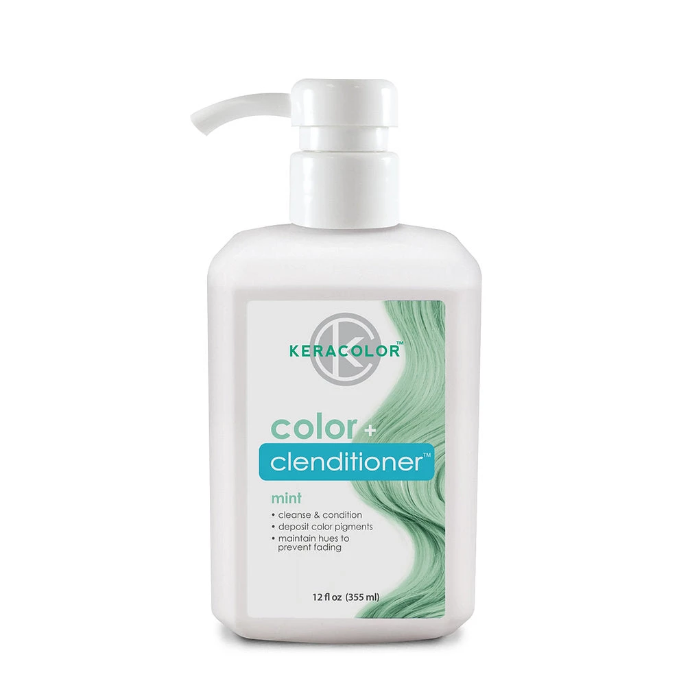 Keracolor Color Clenditioner Colour Shampoo in Mint cleanses, nourishes and imparts gorgeous colour onto your hair! This non-lathering conditioning cleanser instantly deposits direct dye colour pigments with every wash. Perfect to maintain vibrant coloured hair and prevent fading, or mix it up between salon visits. Colours becoming more vibrant and longer lasting with every wash. Pigment can last up to 10-15 washes, depending on porosity and pre-lightened level!