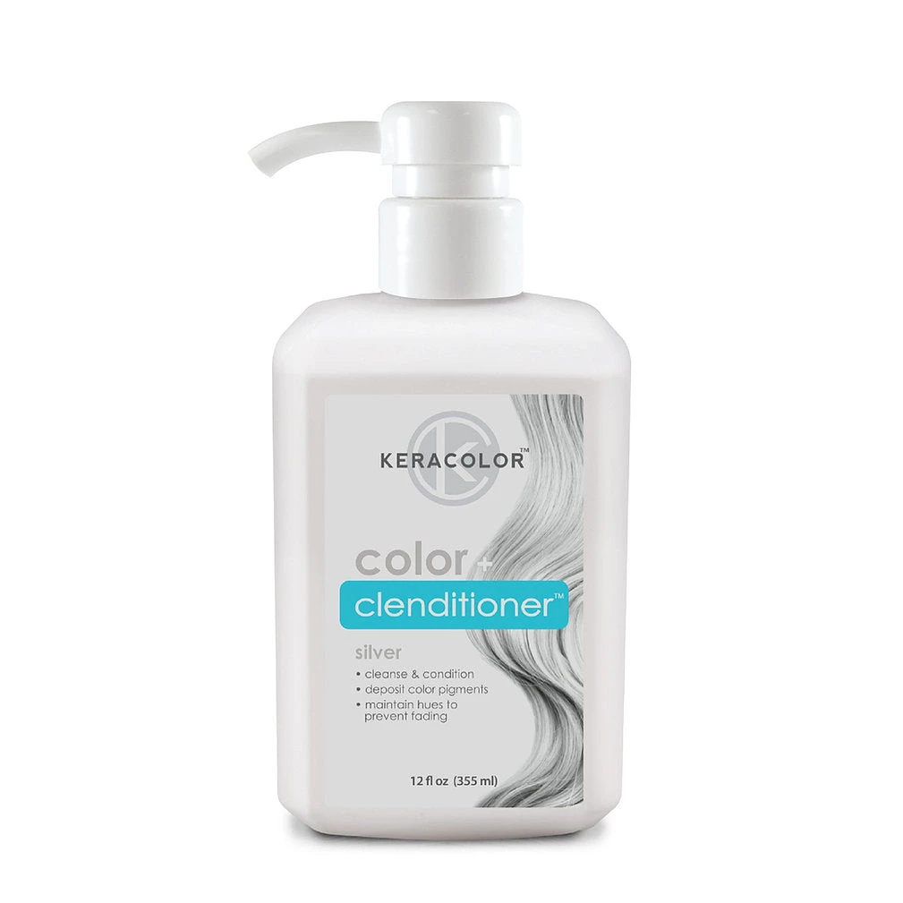 Keracolor Color Clenditioner Colour Shampoo in Silver cleanses, nourishes and imparts gorgeous colour onto your hair! This non-lathering conditioning cleanser instantly deposits direct dye colour pigments with every wash. Perfect to maintain vibrant coloured hair and prevent fading, or mix it up between salon visits. Colours becoming more vibrant and longer lasting with every wash. Pigment can last up to 10-15 washes, depending on porosity and pre-lightened level!