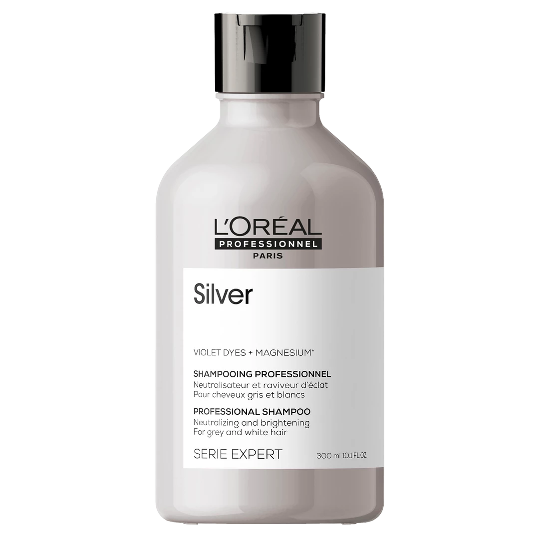 Showcase the beauty of grey, white or light blonde hair with the L’Oréal Professionnel Silver clarifying purple shampoo.