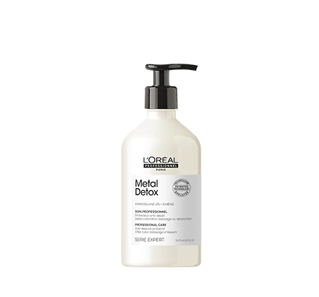 Metal Detox anti-deposit protector care protect the fiber from particle deposits after any color, balayage or lightening service. It maintains color vibrancy with intense shine. Hair is instantly strengthened and less porous. Metal inside the fiber creates both a risk of breakage and negatively impacts color results during color, balayage and lightening services.