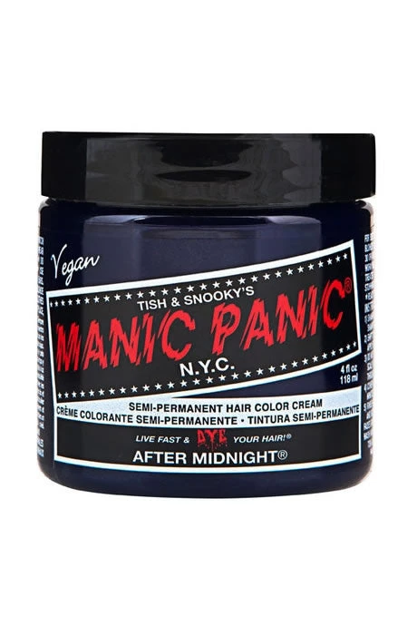 As a deep and brooding shade of blue, After Midnight resembles the dark sky on a clear and starry night. The dye may add slight highlights to dark hair. Vibrant color results are best achieved by applying to hair that has been pre-lightened.