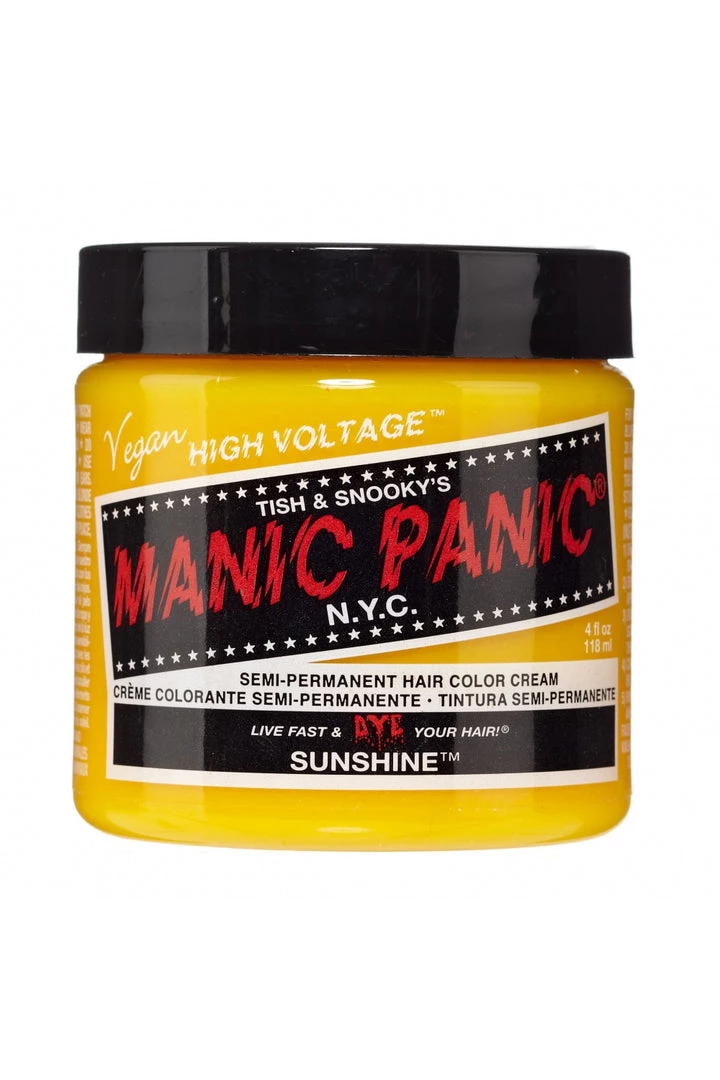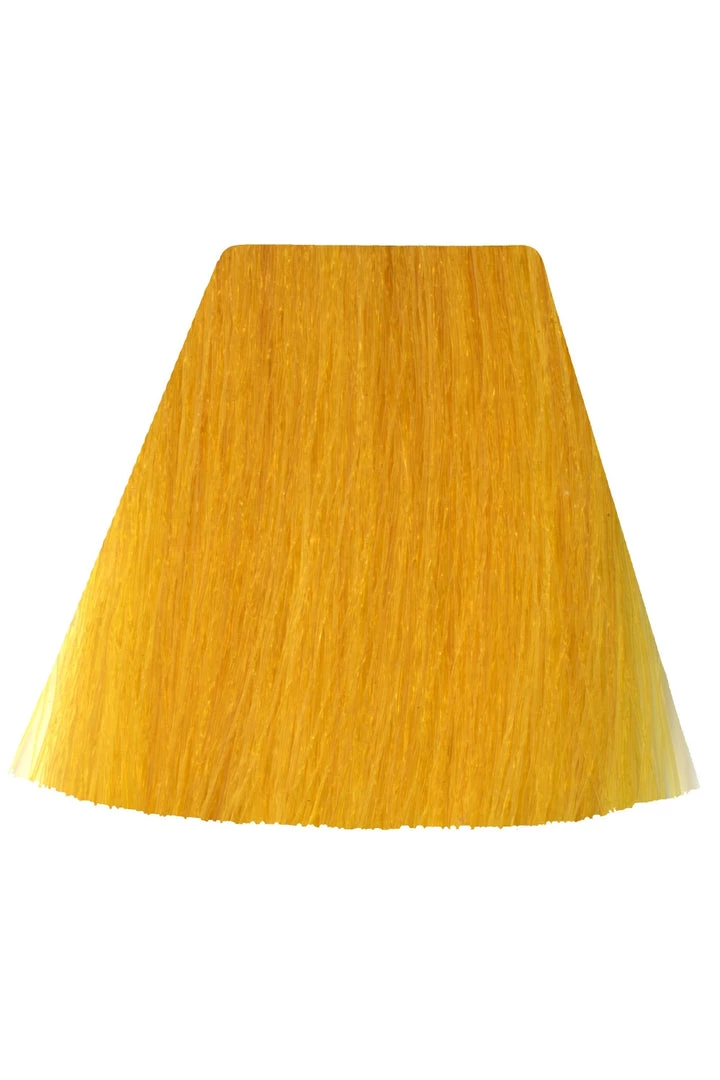Like a bright ray of golden sunlight, this color differs from Electric Banana by its warmth. Over the years it has been a favorite hair color for pop star Cyndi Lauper. Because the color is so light and bright, hair fully bleached to a level 9 or 10 is recommended before use. Vibrant color results are best achieved by applying to hair that has been pre-lightened.