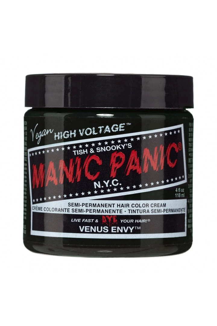 Freud better watch out, because Manic Panic is one-upping him with a sassy dye dubbed Venus Envy. Darker than Electric Lizard, yet lighter and warmer than Green Envy, this color is as lush and alive as flora in summer. When applied to darker shades of hair, dimensional highlights can be achieved. Vibrant color results are best achieved by applying to hair that has been pre-lightened.