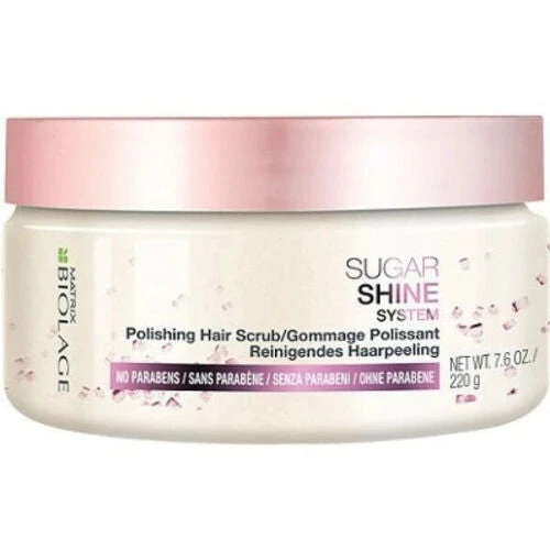 Restore radiant locks with Matrix Sugarshine Polishing Hair Scrub. Fortified with water-soluble sugar crystals that melt into hair, the pre-shampoo treatment gently removes build-up, dullness, and impurities to leave hair soft and sleek. Paraben and silicone free. Can also be used as a body scrub.