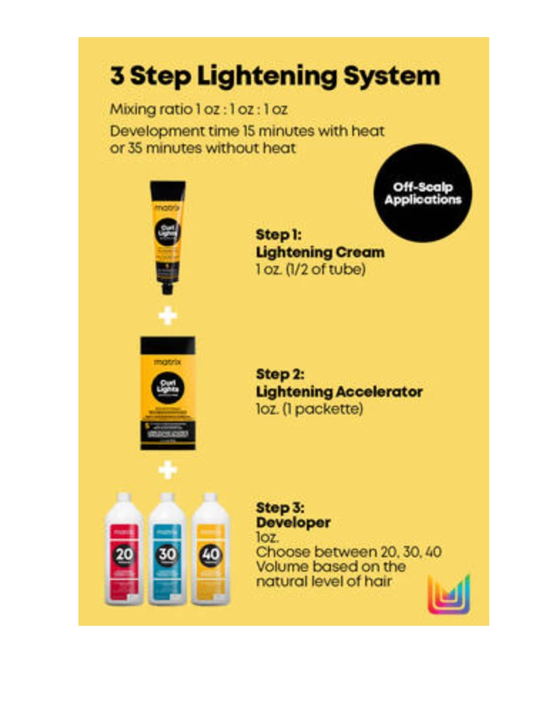 When purchasing box of six 1 oz. Curl Lights Lightening Accelerator packets, pair with three 2 oz. Curl Lights Lightening Cream for full usage