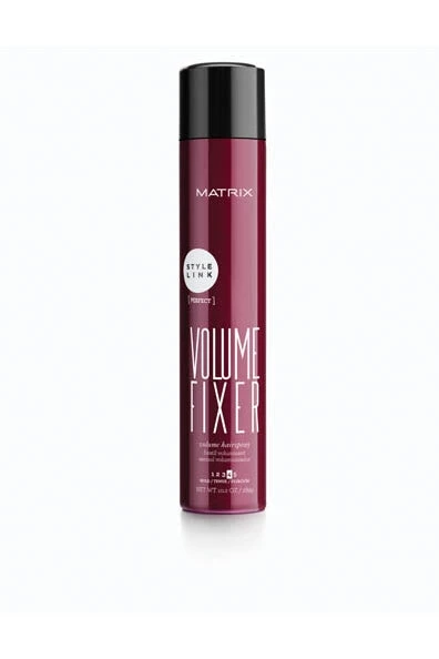 Matrix’s Volume Fixer volumizing hair spray is your link to lock in full volume and body. Even diffusion of lightweight polymers enhances support to voluminous hair styles. Does not weigh down hair.