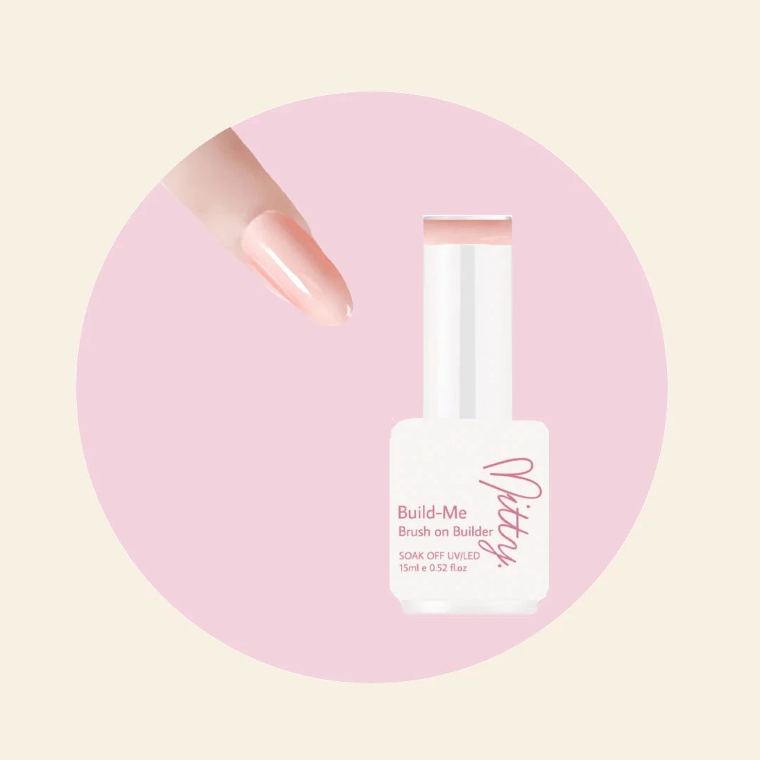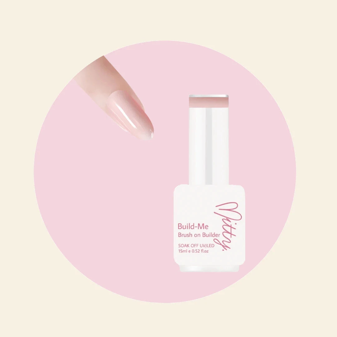 Mitty Brush on Builder gel is designed to be super strong. It can be used to create an extension over a nail tip or form and to add strength to the natural nail.