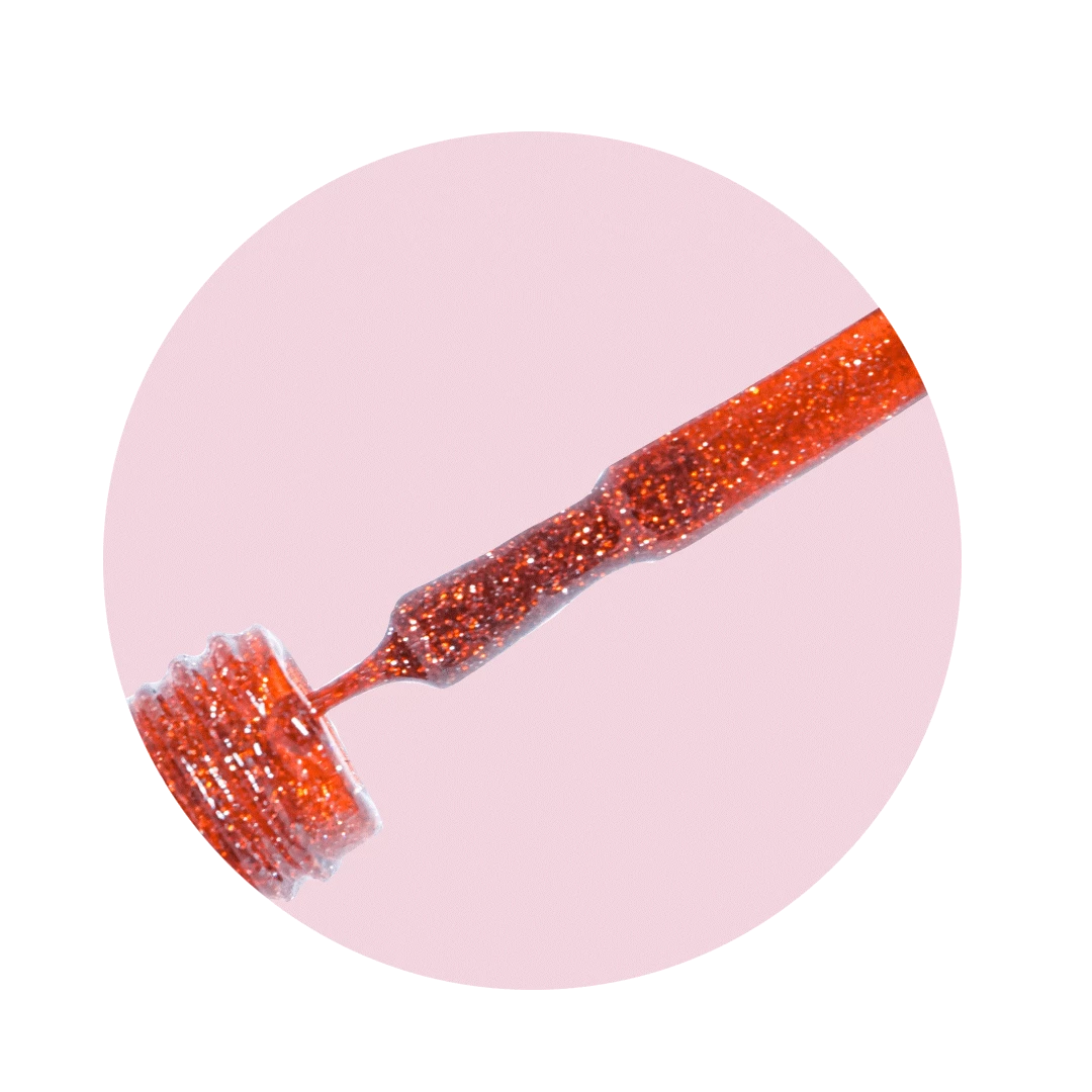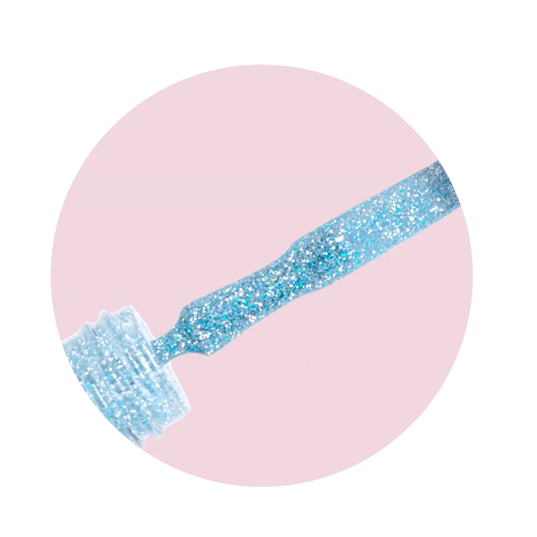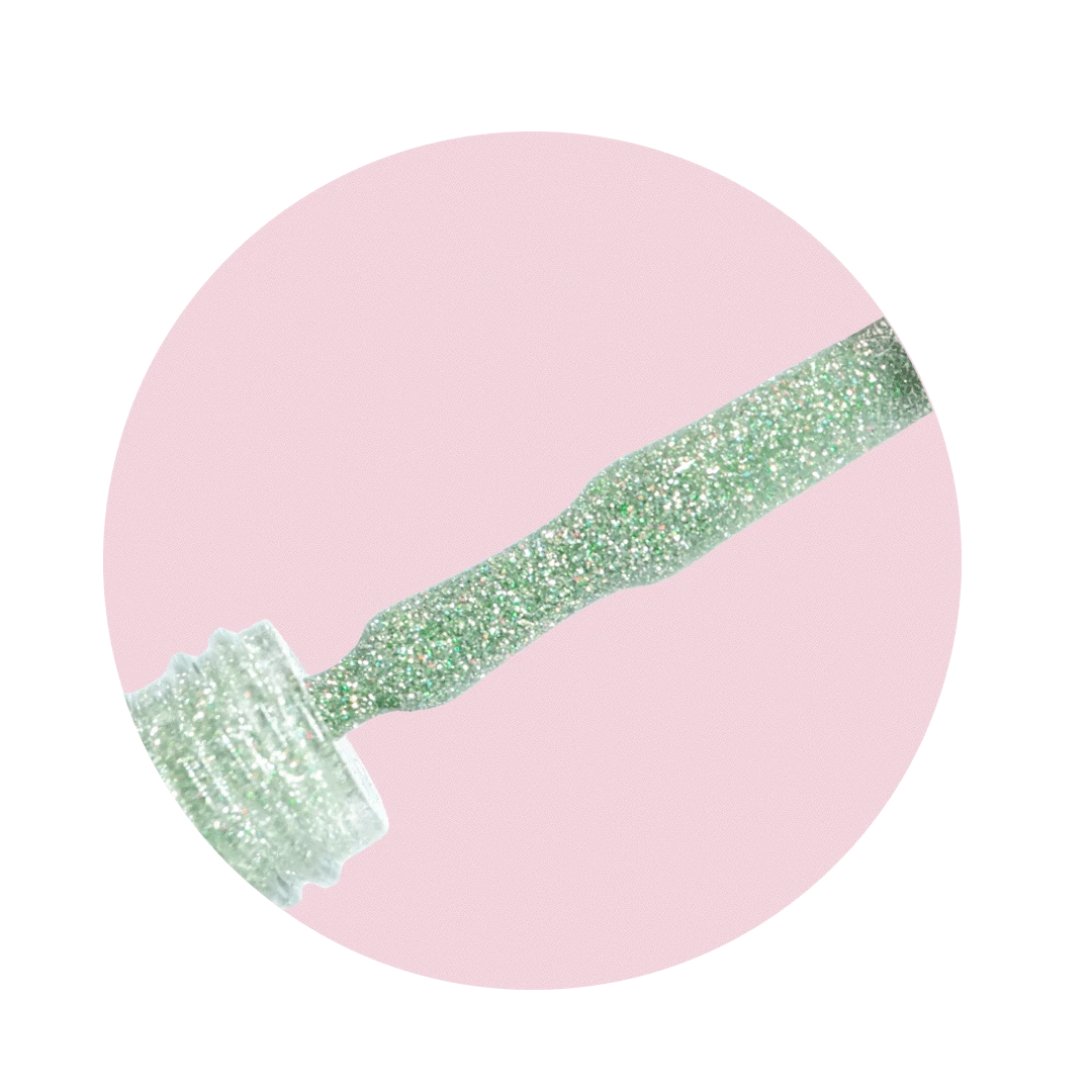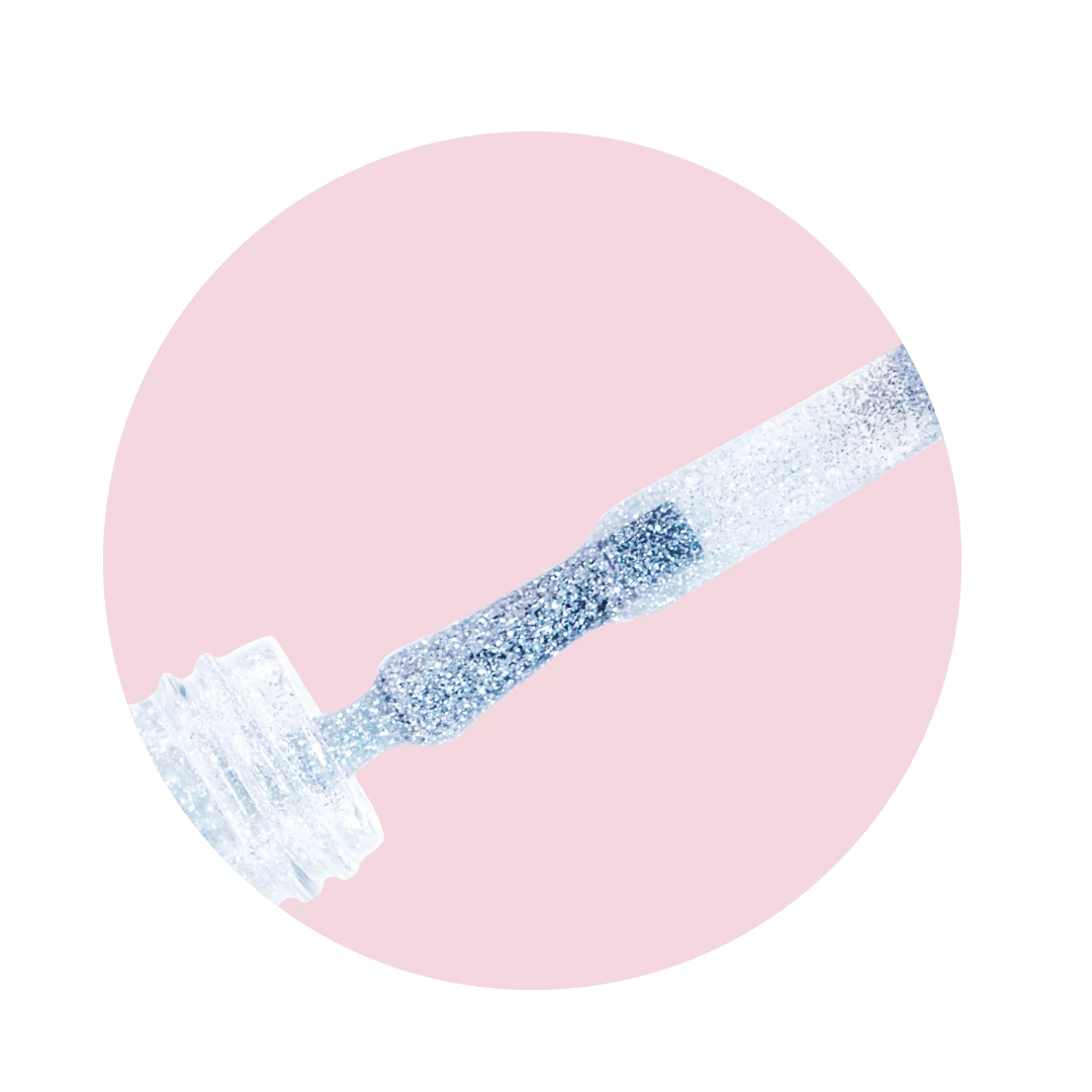 - Apply a thin layer of Flash glitter gel polish and cure for 30 seconds in Mitty 54W LED Lamp. Repeat this step.