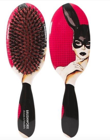 Brushworx Artists and Models Hair Brush Collection, this imaginative and unique design series elevates the simple cushion brush into a work of art! Utilising porcupine bristle (nylon and boar bristle) and a soft cushion base, Sugar Baby creates soft, silky hair with incredible shine and lustre. Perfect for detangling, blow-drying hair smooth, finishing updos, distributing styling product and brushing out heat styled curls. Brushworx Artists and Models, where brushes become an imaginative subject of desire.