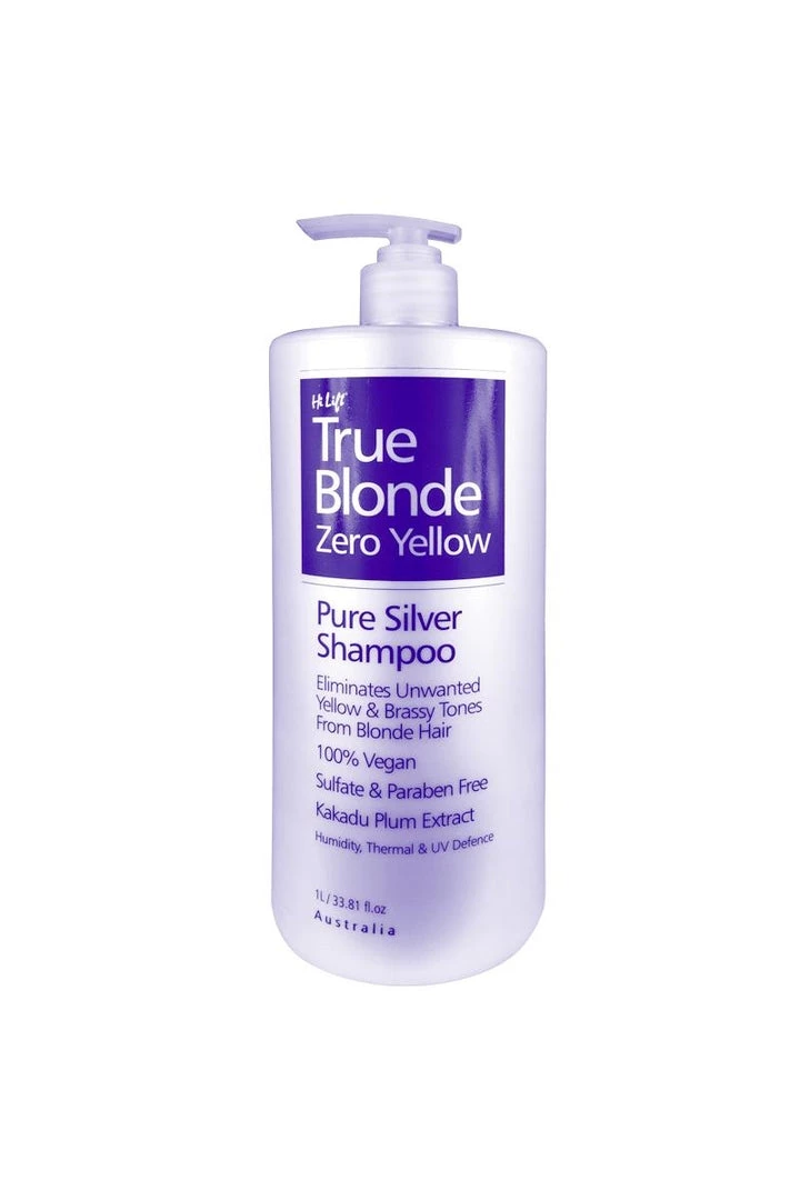 Hi Lift True Blonde Zero Yellow Pure Silver Shampoo eliminates unwanted yellow and brassy tones from blonde and grey hair.