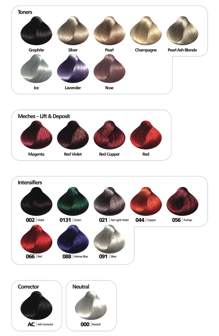 – Meches, ultra blondes, super reds, correctors