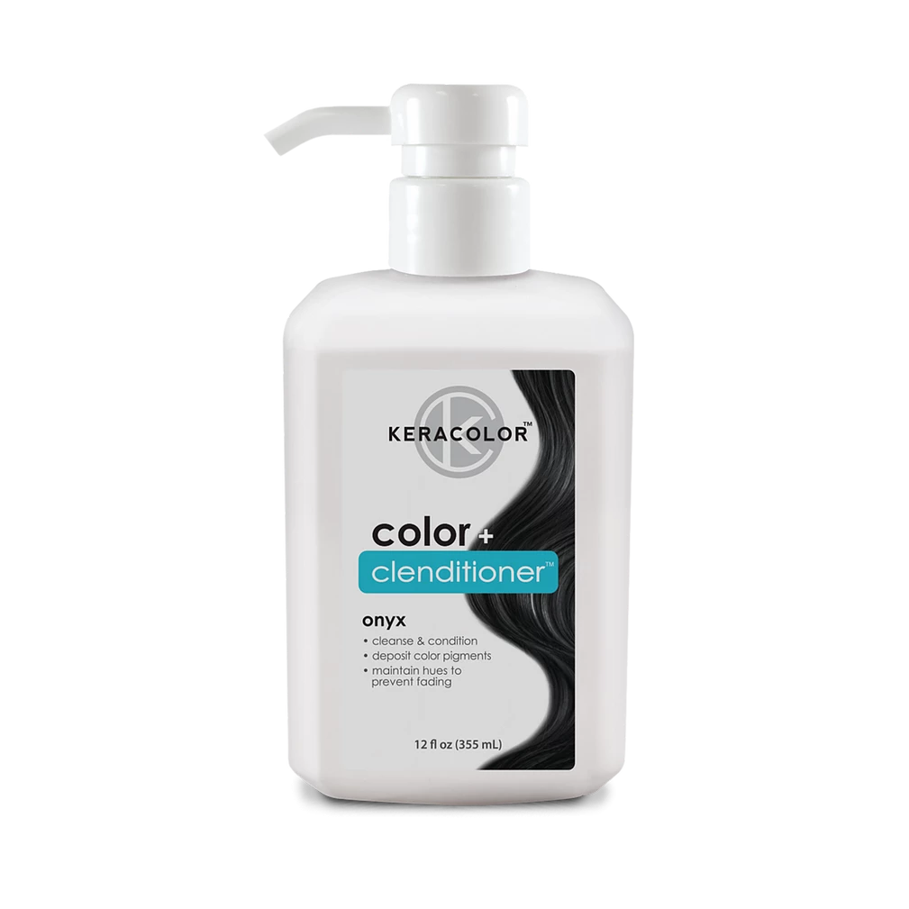 Keracolor Color Clenditioner Colour Shampoo in Onyx cleanses, nourishes and imparts gorgeous colour onto your hair! This non-lathering conditioning cleanser instantly deposits direct dye colour pigments with every wash. Perfect to maintain vibrant coloured hair and prevent fading, or mix it up between salon visits. Colours becoming more vibrant and longer lasting with every wash. Pigment can last up to 10-15 washes, depending on porosity and pre-lightened level!