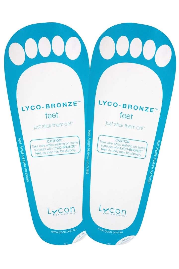 Lyco-Bronze Feet are the perfect spray-tanning accessory! Stick them on to protect client’s feet from absorbing excess solution during spraying and to protect your salon from unsightly tan stains.