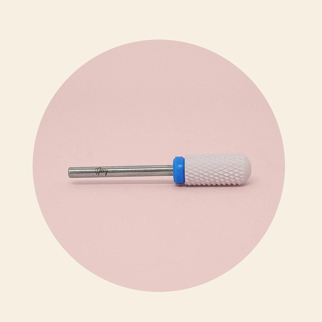 Mitty’s smooth top barrel medium drill bit is a gorgeous pink heat resistant ceramic bit with an x-cut design. This drill bit’s smooth top design protects the skin, prevents damage to cuticles and contours to the nail without leaving behind grooves. It’s perfect for surface work such as removing excess product and smoothing the surface prior to top coat application. Also great if used to remove dip powder and gels, backfill cutting and creating a sharp c-curve.