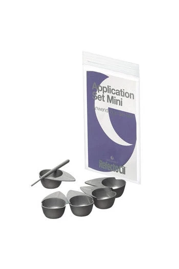 The set consists of 5 mini tinting dishes and 5 application sticks with grooves. The tinting dish is used for mixing the paste for eyelash and eyebrow tinting. It is small, lightweight, unbreakable and its plain surface can be cleaned easily. The shape allows an easy and safe deposit of the application stick. The application sticks in this set differ from the conventional ones by having grooves. When applying the tint the hairs are being separated by the grooves and this allows the tinting paste to cover the hair. Ensuring an beautiful and even tinting result is achieved.