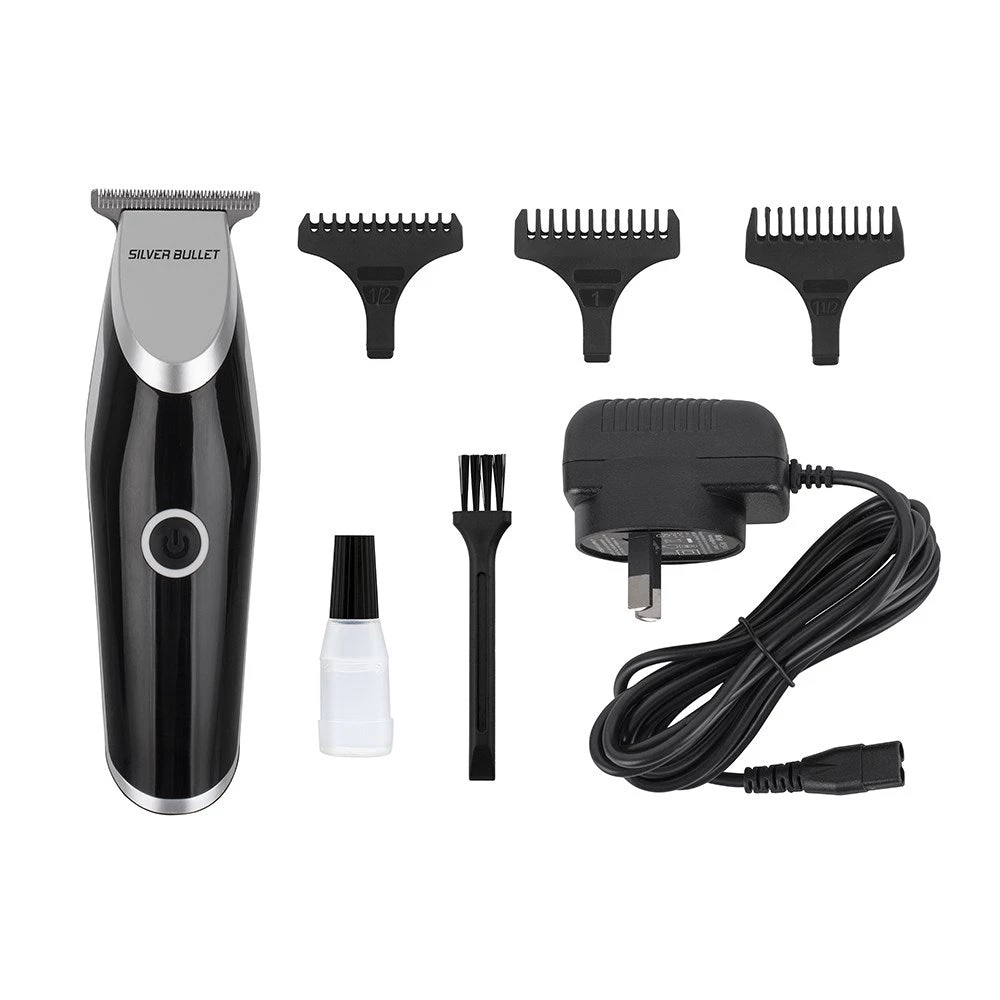 Experience the might of the mini. Precision, power and performance… in a mini size! Silver Bullet Mighty Mini Hair Trimmer features a powerful 7,000 rpm motor and stainless steel blades to ensure a closer, faster, better trimming experience. Amazing convenience, portability and manoeuvrability with this professional mini trimmer. Long-life lithium battery with up to three hours of runtime means Mighty Mini is ready when you are, wherever you are. Classic silver and black finish. The mini with the most!