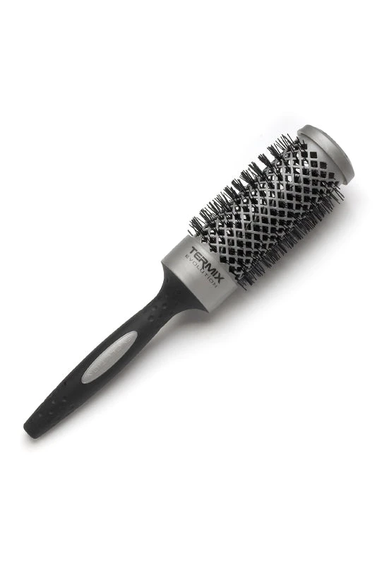 Hairbrush designed with special high-performance ionized bristles for hair of medium thickness. The Termix Evolution Basic hairbrush is the only brush designed to control dehydration problems presented by this type of hair by combining the design of its tube and the amount and specific thickness of the ionized nylon fibers. It is available in a silver color and in several diameters depending on the desired and the amount of hair.