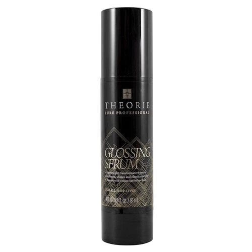 Theorie Pure Professional Glossing Hair Serum hydrates, shines and eliminates frizz with no weight. This sheer hydrating serum adds pure shine with no after-feel. Creates silky highlights and transforms dull frizz into soft styles with movement. Infused with Sea Kelp Protein which strengthens strands. Hibiscus Extract, smooths and hydrates. Seaberry Extract, renews elasticity. Marula Oil, revitalises shine and softness.