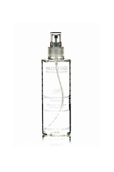 Not a milk, not a toner… this is a clear, transparent micellar lotion. Ideal for cleansing and freshly moisturising the skin, this delicate, water-based formula is very handy and quick. Micelle is a microscopic ambivalent structure (lipophilic-hydrophilic) that captures and traps toxins and impurities while respecting the skin’s normal physiology. Vitamin C energises the skin and essential oil of Lime from Mexico boosts the hydrolipidic film for guaranteed protection.