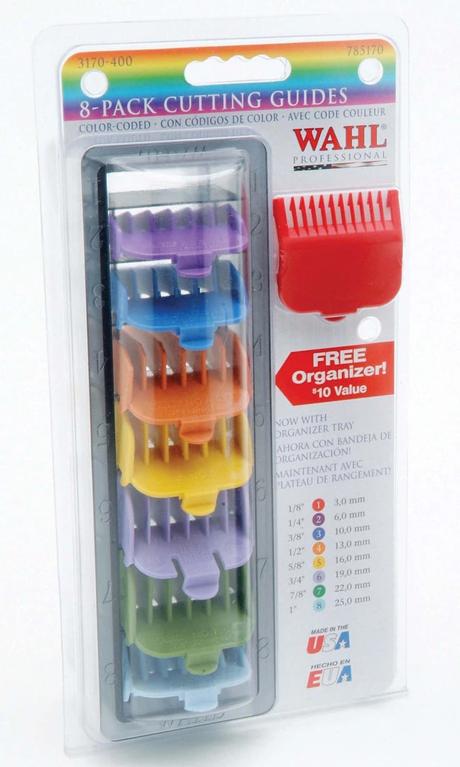 Wahl clipper attachments will fit all full size Wahl clippers. Caddie contains clipper attachments #1, #2, #3, #4, #5, #6, #7 & #8.