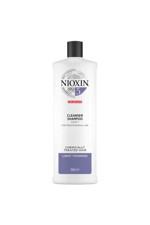 Nioxin’s cleanser shampoo is the first step of a 3-part Nioxin treatment, designed to strengthen the hair and amplify hair structure. System 5 is designed for chemically-treated hair with light thinning.