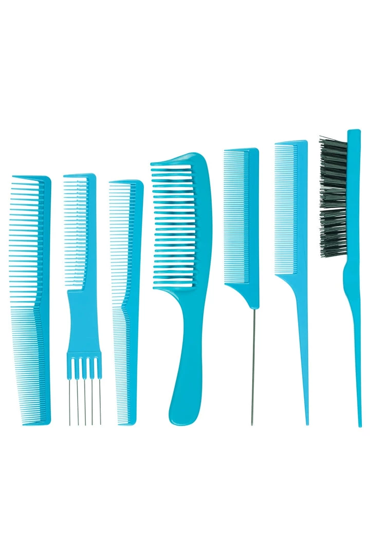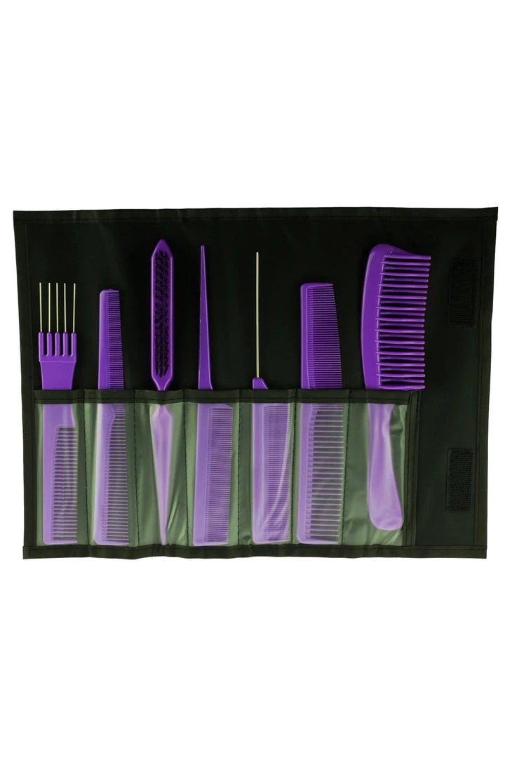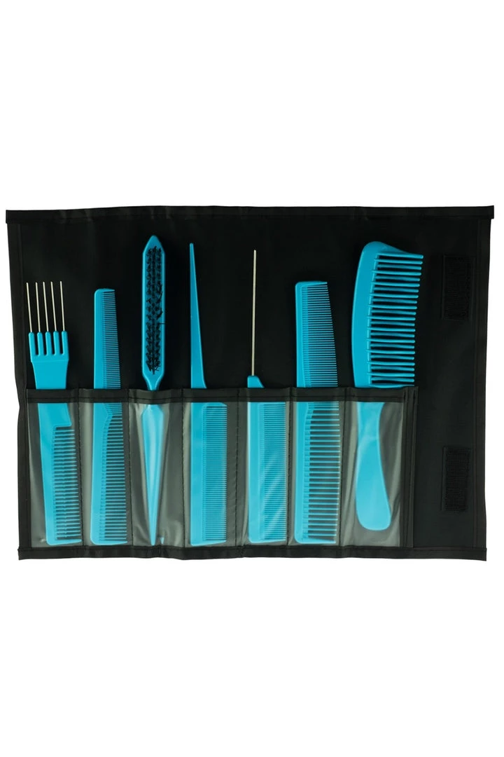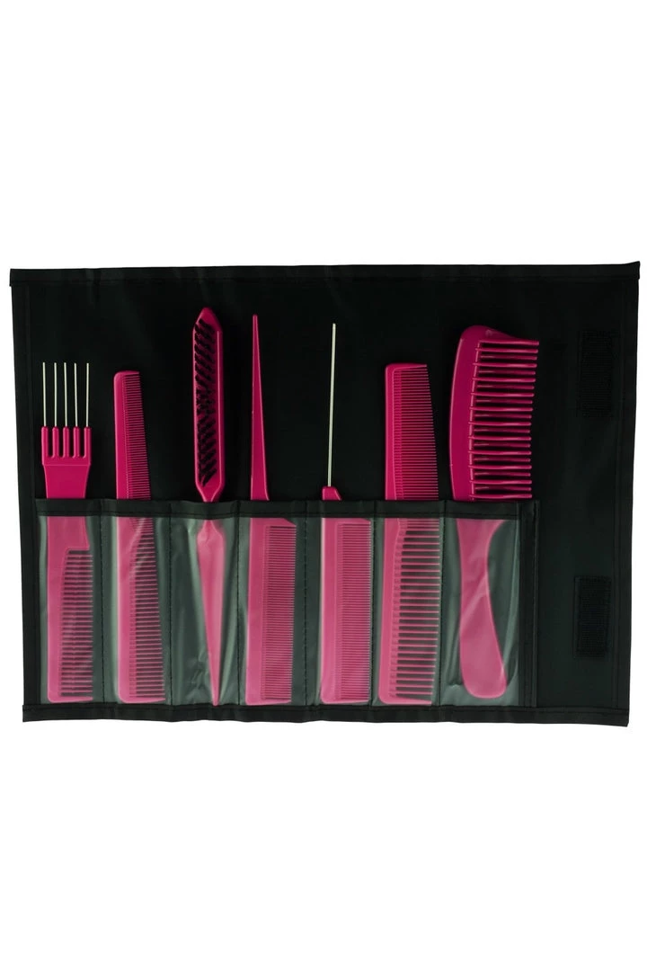The Salon Smart Folding Comb Set displays an array of seven colourful hairstyling tools for all your styling needs. You’ll never be short of a comb again! Housed in a black pouch which folds away for easy storage, the set includes a styling/cutting comb, sectioning comb, plastic comb for colouring, lifting comb, teasing brush and detangling comb.