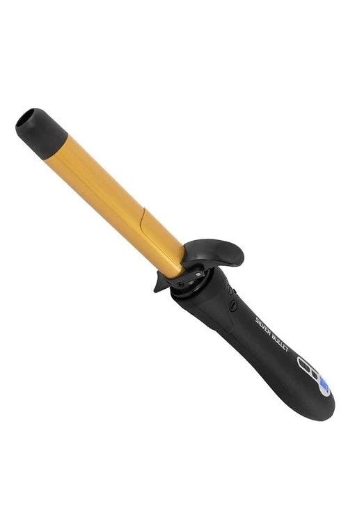 Do the revolution with Silver Bullet Fastlane Rotating Curling Iron. This rotating revolution makes curls and waves instantly effortless, creating perfect waves and curls on all hair types with speed and ease. Press a button and the rotating ceramic barrel will curl either clockwise or anti-clockwise, as you desire, creating even, consistently beautiful curls, always in your chosen direction. Goodbye, wonky curls! With 14 heat settings from 80ËšC to 210ËšC, all hair types will love the rotating ceramic barrel infused with argan oil for stunning shine and smoothness.