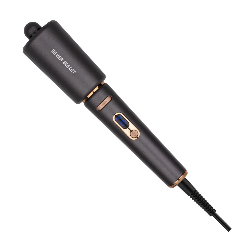 The new and improved automatic curler! Wishing for long-lasting, voluminous and bouncy curls with hardly any effort? Silver Bullet Roulette Auto Curler is easier, faster, better. Just push the button and the internal ceramic barrel gently twirls a section of hair. Hold for 8 seconds to reveal the results: incredibly consistent, even curls in either direction with no skill required. So what’s new about Silver Bullet Roulette Auto Curler? Sleek design, LCD display and safe auto shut off function. With heat settings from 150°C-210°C, it’s perfect for every hair type. This is automatic curling made even better!