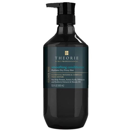 Theorie Pure Professional Smoothing Conditioner transforms dry unruly frizz, with deep strand hydration and repair, for utterly smooth, sleek, shiny hair. Sea Kelp Protein and Amino Acids strengthen and silken frizz. Hibiscus Extract smooths split ends and adds shine. Seaberry Extract softens and restores elasticity. Marula Oil instantly hydrates into core, eliminates breakage.