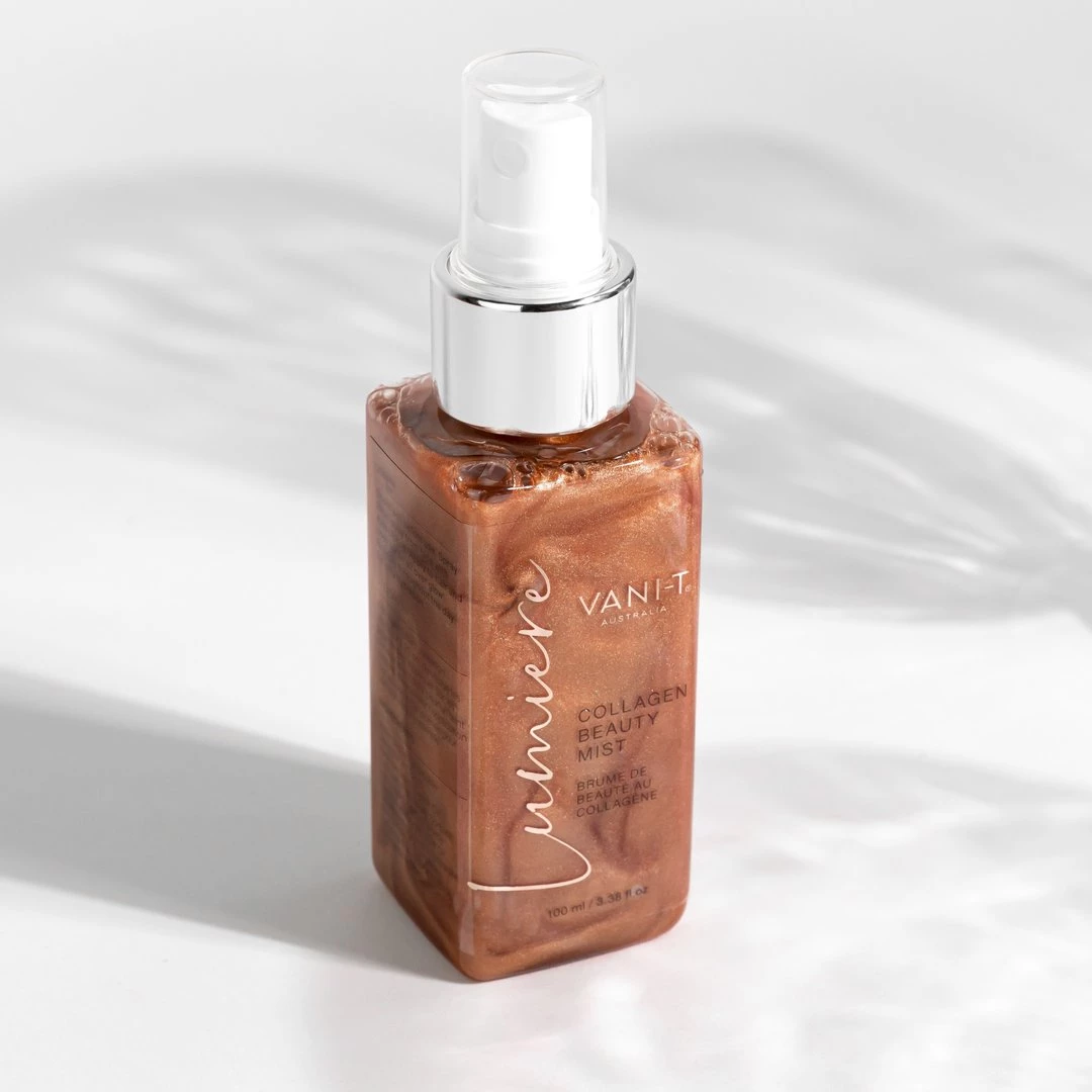 Lumiere Collagen Beauty Mist is a lightweight 3-in-1 illuminating prep, refresh and setting mist. Infused with collagen peptides, skin loving ingredients and light-reflecting particles, this hydrating mist restores skin’s youthful appearance and gives a burst of radiance anytime of day.