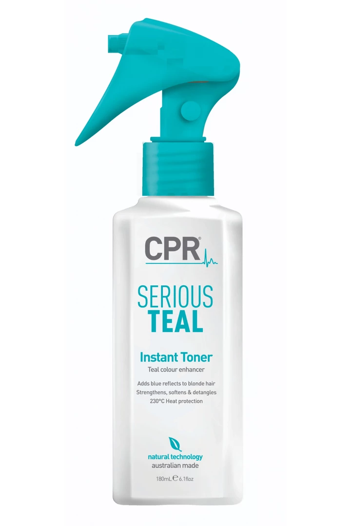 Teal colour enhancer. CPR Instant toners are like makeup for your hair. Designed to instantly tone & enhance blonde hair and rinse-out easily. Keep your colour looking fresh or completely change it! Temporarily add blue reflects to blonde or lightened hair to create teal results. Shampoos out easily. Formulated for 230°C heat + UV protection. Strengthens, conditions & detangles.